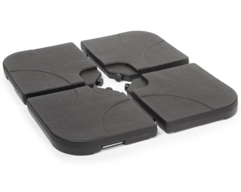 Karakteristike – Tip: Postolje za suncobran Delova u setu: 4 Dimenzije: 50cm x 50cm x 7.5cm (1 deo) Materijal: HDPE plastika Boja: Crna Težina: 60kg (sa vodom), 80kg (sa peskom) Stanje: Nekorišćeno Ostale karakteristike – Ostalo: Integrisane udubljene ručke,Kapacitet 1 tega: 15l,Za modele FDZN 5103, FDZN 5105, FDZN 5107 Reklamacioni period – Reklamacioni period: 24 meseca