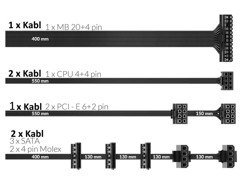 Osnovne karakteristike – Tip: Active PFC ATX standard: 12V v2.53 Snaga: 850 W Klasifikacija efikasnosti: 80 Plus Gold Efikasnost: 89%,90%,92% Vrsta kablova: Fiksni Sistemi zaštite: OCP (Over Current Protection),OPP (Over Power (Load) Protection),OVP (Over Voltage Protection),SCP (Short-Circuit Protection) +12V naponske grane – 1: 54A Maksimalna kombinovana snaga: 648W Ostale naponske grane – +5V: 15A +3.3V: 15A Maksimalna kombinovana snaga: 90W Fiksni priključci – ATX 24pin: 24(20+4)pin ATX 8pin (EPS 12V): 2x 8(4+4)pin PCI Express 8pin: 2x 8(6+2)pin SATA: 6 Molex 4pin: 4 Hlađenje – Tip: Aktivno Broj ventilatora: 1 Dimenzije ventilatora: 140mm Dodatne funkcije: Intelligent auto-thermal fan control Fizičke karakteristike – Format: ATX Dimenzije: 160mm x 150mm x 86mm Masa: 1.8kg Ostalo: Flat kablovi Reklamacioni period – Reklamacioni period: 24 meseca