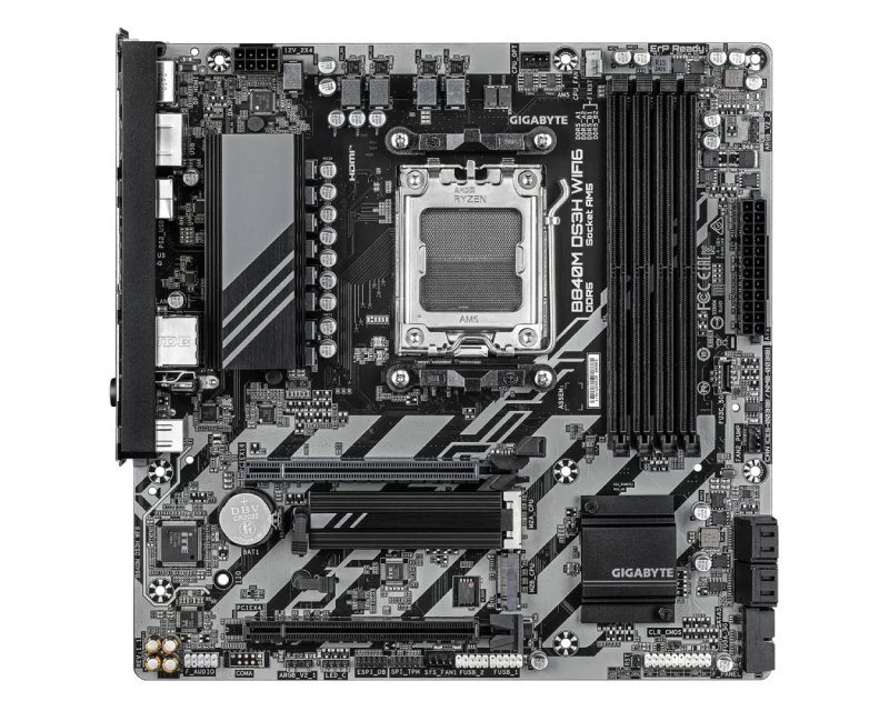 Osnovne karakteristike – Procesorsko ležište (socket): AMD AM5 Čipset: AMD B840 Memorija – Tip memorije: DDR5 Memorijski slotovi: 4 Podržane memorije: 4.400MT/s,4.800MT/s,5.200MT/s,5.600MT/s (O.C.),6.000MT/s (O.C.),6.200MT/s (O.C.),6.400MT/s (O.C.),6.600MT/s (O.C.),6.666MT/s (O.C.),6.800MT/s (O.C.),7.000MT/s (O.C.),7.200MT/s (O.C.),7.400MT/s (O.C.),7.600MT/s (O.C.),7.800MT/s (O.C.),7.900MT/s (O.C),7.950MT/s (O.C),8.000MT/S (O.C.),8.200MT/s (O.C.) Maksimalna ukupna memorija: 256GB Ostale osobine: Dvokanalni (Dual-channel) režim rada memorije,Podrška za AMD EXTended Profiles for Overclocking (EXPO),Podrška za Extreme Memory Profile (XMP),Podrška za non-ECC UDIMM memory,Podrška za Unbuffered ECC memoriju Slotovi – PCI Express x16 slot: 1x PCI Express 3.0 (x4 mode),1x PCI Express 4.0 (x16 mode) Skladišni interfejs – SATA priključci (ukupno): 4 SATA priključci: SATA III 6Gbps Broj M.2 slotova: 2 Podržani M.2 formati: 1x 2280 / 2580 (podrška za PCIe 4.0 x4/x2 mod),1x 2280 / 2580 / 22110 / 25110 (podrška za PCIe 4.0 x4/x2 mod) RAID: RAID 0,RAID 1,RAID 10,RAID 5 Mreža – Žična mreža (LAN): 2.5GBase-T (Gigabit) Model: Realtek Wi-Fi: Da Wi-Fi standard: IEEE 802.11 a/b/g/n/ac/ax 2.4/5GHz Bluetooth: Da Bluetooth verzija: 5.3 Audio – Broj kanala: 2/4/5.1/7.1 Model: Realtek Napomena: High Definition Priključci na zadnjem panelu – Broj DisplayPort priključaka: 2 DisplayPort priključci: 2x DisplayPort 1.4 Broj HDMI priključaka: 1 HDMI priključci: 1x HDMI 2.1 PS/2: 1 (tastatura ili miš) Ukupno USB priključaka: 7 Ukupno USB-C priključaka: 1 USB-A priključci: 2x USB 5Gbps (3.2 Gen 1),4x USB 2.0 USB-C priključci: 1x USB 5Gbps (3.2 Gen 1) RJ-45 (LAN): 1 Audio: 3x 3.5mm Ostali priključci: 1x Q-Flash Plus dugme Unutrašnji priključci – Naponski priključci: 1 x 8-pin ATX 12V power connector,1x 24-pin ATX main power connector USB-A: 1 x podrška za 1 USB 5Gbps port,2 x podrška za 1 USB 2.0 port USB-C: 1 x podrška za 1 USB 5Gbps port Audio: 1x Front panel audio,1x Front panel header Ostali priključci: 1 x Clear CMOS jumper,1 x CPU fan header,1 x reset jumper,1 x RGB LED strip header,1 x system fan/water cooling pump headers,1 x Trusted Platform Module (TPM),1x CPU fan/water cooling pump header,1x System Fan header,2 x M.2 Socket 3,2x addressable RGB Gen2 LED strip headers,4 x SATA 6Gb/s Napomena: Za iskorišćavanje određenih internih konektora potrebni su dodatni bracket-i ili priključci na kućištu Ostale karakteristike – Podržane tehnologije: Aorus Ai Snatch,Detekcija Temperature,Fan fail warning,Fan speed control,Fan speed detection,GIGABYTE Control Center,HWiNFO,HyperTune BIOS,iTE I/O Controller Chip,Norton Internet Security (OEM verzija),Q-Flash,Q-Flash Plus,Smart Backup,UEFI Bios,Voltage detection,VRM heatsink design,Water cooling flow rate detection,X3D Turbo Mode Fizičke karakteristike – Format: microATX Dimenzije: 244mm x 244mm Reklamacioni period – Reklamacioni period: 36 meseci