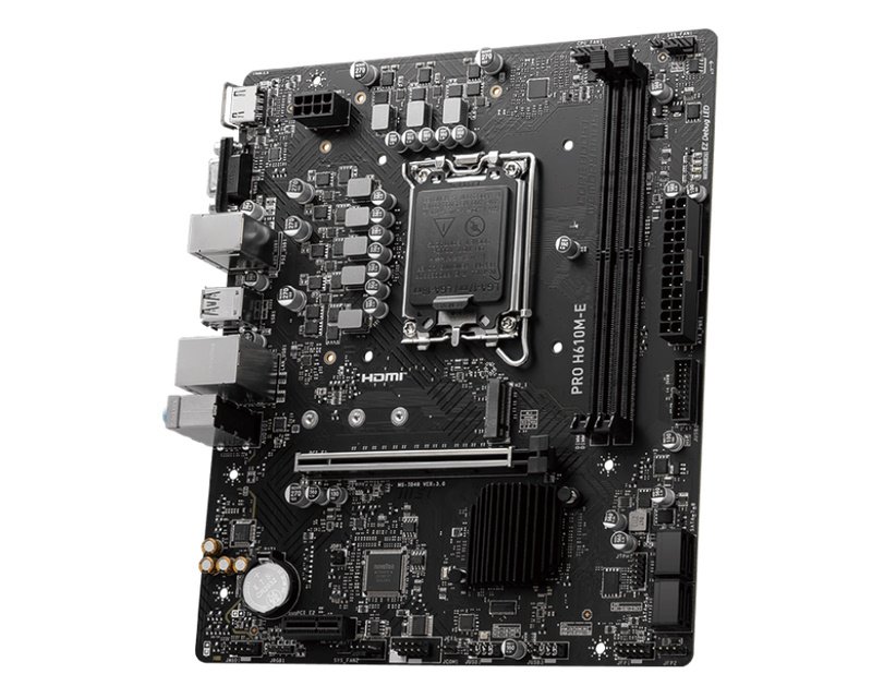 Osnovne karakteristike – Procesorsko ležište (socket): Intel 1700 Čipset: Intel H610 Memorija – Tip memorije: DDR5 Memorijski slotovi: 2 Podržane memorije: 5.600MHz Maksimalna ukupna memorija: 96GB Ostale osobine: Dvokanalni (Dual-channel) režim rada memorije,Podrška za non-ECC UDIMM memory,Podrška za Unbuffered ECC memoriju Slotovi – PCI Express x16 slot: 1x PCI Express 4.0 PCI Express x1 slot: 1x PCI Express 4.0 Skladišni interfejs – SATA priključci (ukupno): 4 SATA priključci: SATA III 6Gbps Broj M.2 slotova: 1 Podržani M.2 formati: 1x 2242 / 2260 / 2280 (podrška za PCIe 3.0 x4 mod) Mreža – Žična mreža (LAN): 1000Base-T (Gigabit) Model: Realtek RTL8111H Audio – Broj kanala: 8 (7.1) Model: Realtek ALC897 Codec Napomena: High Definition Priključci na zadnjem panelu – Broj HDMI priključaka: 1 HDMI priključci: 1x HDMI 1.4 VGA D-sub: 1 PS/2: 1 (tastatura ili miš) Ukupno USB priključaka: 6 USB-A priključci: 2x USB 5Gbps (3.2 Gen 1),4x USB 2.0 RJ-45 (LAN): 1 Audio: 3x 3.5mm Unutrašnji priključci – Naponski priključci: 1x Power Connector (ATX_PWR),1x Power Connector (CPU_PWR) USB-A: 2 x podrška za 1 USB 5Gbps port,4 x podrška za 1 USB 2.0 port Audio: 1x Front panel audio Ostali priključci: 1x Chassis Intrusion (JCI),1x Com Port (JCOM),1x CPU Fan,1x RGB LED connector (JRGB),1x TPM pin header(Support TPM 2.0),2x Front Panel (JFP),2x System Fan Ostale karakteristike – Podržane tehnologije: EZ setting Fizičke karakteristike – Format: microATX Dimenzije: 236.16mm x 200mm Reklamacioni period – Reklamacioni period: 36 meseci