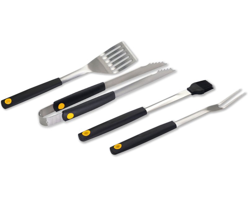 Karakteristike – Tip: Pribor za roštilj Fizičke karakteristike – Boja: Crno-siva Pakovanje: 1x četka,1x klešta,1x lopatica,1x viljuška Materijal: Nerđajući čelik,Plastika Stanje: Nekorišćeno Ostalo – Upotreba: Za roštilj Reklamacioni period – Reklamacioni period: 24 meseca
