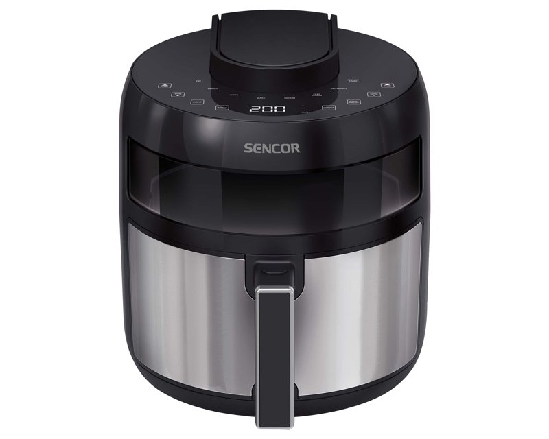 Karakteristike – Tip: Friteza na vruć vazduh Snaga: 1.500W Nivo buke: 65dB(A) Temperatura: od 80°C do 200°C Vreme zagrevanja: 4min Fizičke karakteristike – Boja: Crna Dimenzije: 345mm x 295mm x 270mm Težina: 4.3kg Zapremina: 5l Ostalo – Dodatne funkcije: 8 funkcija pečenja,Automatsko gašenje,Digitalni tajmer,LED ekran Podržane tehnologije: Prženje bez ulja Reklamacioni period – Reklamacioni period: 24 meseca